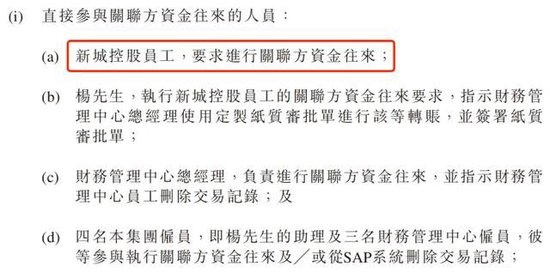 资金往来系应新城控股员工要求