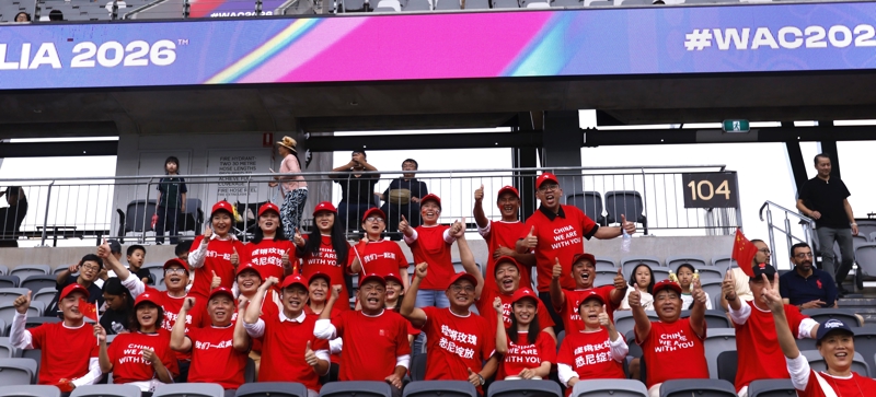 新华社照片,悉尼(澳大利亚),2026年3月6日\n 3月6日,中国队球迷在场边助威。\n 当地时间3月6日,在澳大利亚悉尼举行的2026年女足亚洲杯小组赛B组比赛中,中国队对阵乌兹别克斯坦队。\n 新华社发(胡泾辰摄)