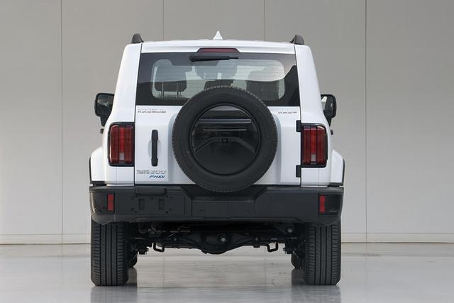 坦克300 Hi4-T整车依然采用方盒子造型,符合一个硬派SUV的设计风格,坦克300 Hi4-T的轮毂也经过重新设计,更加时尚,动感,尾灯还经过黑化处理,后挂式备胎也是必不可少,车身尺寸方面,新车的长宽高分别为4760x1930x1903毫米,轴距为2750毫米,接近角为32.0°,离去角为33°。