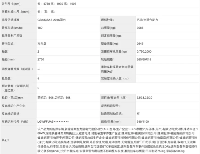 动力部分,坦克300 Hi4-T由代号为E20NA的2.0T涡轮增压发动机+电动机组成,发动机达到252马力,最大扭矩为380牛米,电池类型为三元锂电池,电芯由蜂巢能源提供
